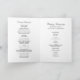 Este programa de cerimônias de dia de casamento dobrado é fácil de personalizar para o seu grande dia. Um arco de flores aquáticas rodeia uma foto favorita na frente. O dentro inclui os participantes da sua cerimônia e a ordem do serviço. Use o cobrir traseiro para uma nota do casal. Alguns trabalho de arte da Julia Dreams Co.