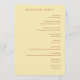 This wedding program features a minimalist and elegant design with a soft beige background, creating a serene and inviting atmosphere. The layout is clean and balanced, showcasing a list of ceremony events in a classic serif font that adds traditional charm. A single autumn leaf illustration in warm hues of red, orange, and yellow anchors the bottom left corner, adding an organic touch to the structured text. Perfect for formal weddings, this design combines simplicity with subtle sophistication, making it ideal for couples seeking a timeless aesthetic.
