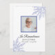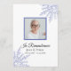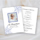 Lembre-se do seu amado e comemore sua vida com o bonito Elegante Blue Winter Snowflakes Programa de Serviço Funeral. Esta elegante linha do tempo do serviço de memorial do inverno personalizado apresenta flocos de neve azuis intrincados adorando os cantos com um fundo branco. Personalize-o com uma fotografia do falecido, dos seus dados pessoais e da ordem da cerimônia de comemoração da igreja de dezembro, Janeiro ou fevereiro.