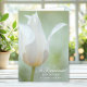 Lembre-se do seu amado e comemore sua vida com o elegante Programa Funeral de Serviço de Primavera de Tulipas Brancas. Esta típica linha cronológica do serviço de memórias florais personalizadas apresenta uma fotografia floral colorida e fechada de uma flor branca de tulipa no caule com um fundo verde-turvo de jardim. Personalize-o com datas de nascimento e morte, detalhes pessoais e ordem de cerimônia de celebração do serviço da igreja. Uma ideia perfeita para um evento bonito de março, abril ou maio na primavera.
