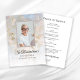 Lembre-se do seu amado e comemore sua vida com o bonito Programa de Serviço Funeral Floral do Cravo Branco. Esta elegante e personalizada linha do tempo do serviço de memorial de flores apresenta uma fotografia floral digitalmente pintada de pétalas floridas de flores brancas. Personalize-o com uma fotografia do falecido, dos seus dados pessoais e da ordem da cerimônia de celebração do serviço da igreja.