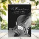 Lembre-se do seu amado e comemore sua vida com o bonito Programa Funeral do Serviço Musical de Violino Negro e Branco. Esta elegante e personalizada orquestra musical ou tema sinfônico que homenageia a timeline do serviço memorial apresenta uma fotografia a preto e branco de um violino clássico com fundo negro. Personalize-o com o nome do falecido, data de nascimento/morte e ordem de cerimônia de celebração do serviço da igreja.