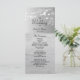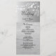 Elegante, moderno boho, programa de casamento rochoso preto e branco com vintage prata, renda floral e cordas.