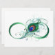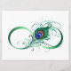 O símbolo do infinito com uma pena brilhante, verde, de pavão artístico sobre um fundo branco. Tatuagem.