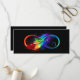 Símbolo infinito desenhado artificialmente com uma bela pena arco-íris sobre fundo branco. Tatuagem.