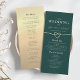 Celebre seu grande dia com este elegante programa de casamento verde esmeralda, com um coração romântico de corda de ouro e um layout limpo e minimalista. Um lado lista os detalhes da cerimônia, o outro destaca sua festa de casamento e uma mensagem obrigado-você. Perfeito para casais na moda que buscam charme de eterno. Para perguntas ou ajuda a coordenar a sua suíte de cheios, envie um e-mail para bpkolman@gmail.com — Estou feliz em ajudar!
