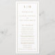 Programa de Casamento Moderno com um design simples, mas elegante, com um layout tradicional. Seu monograma de duas letras está no topo junto com seus detalhes cercados por uma borda fina. Todos os elementos de design são dourados falsos sobre um fundo branco e podem ser alterados na ferramenta de edição de design. Um design minimalista com um sentimento clássico que é excelente de um casamento formal.