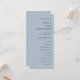 Um simples na moda tipográfico design de azul empoeirado para seus programas de casamento, que é totalmente personalizável. O texto, que você pode personalizar facilmente, está alinhado à direita na frente e à esquerda na parte de trás. Você pode alterar as cores do texto e do plano de fundo se quiser combinar o tema da cor do casamento através da opção Personalizar Mais, assim como de outras opções que você precisar. Se precisar de assistência para a edição deste design, por favor, envie-me uma mensagem.