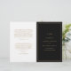 Programa de Casamento Simples dobrado com um design moderno, mas elegante, com seu monograma inicial junto com seus detalhes cercados por uma fina fronteira no cobrir frontal. A dentro tem a festa de casamento do lado esquerdo e a ordem da cerimônia do lado direito. Todos os elementos de design estão em ouro preto e azul e podem ser alterados na ferramenta de edição de design. Um design chic e na moda que é excelente para um casal minimalista. Estes programas de casamento baratos são impressos em folhas de papel para uma opção de orçamento de excelente.