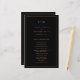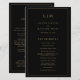 Programa de Casamento Simples com um design moderno, mas elegante, com seu monograma de duas letras no topo e seus detalhes cercados por uma fina fronteira. Todo texto está em dourado falso sobre um fundo preto e pode ser alterado na ferramenta de edição de design. A frente tem sua ordem de cerimônia e a parte de trás tem sua festa de casamento e obrigado. Um design chic e na moda que é excelente para um casal minimalista. Estes programas de casamento baratos são impressos em folhas de papel para uma opção econômica.