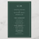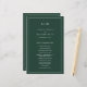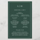 Programa de Casamento Simples com um design moderno, mas elegante, com seu monograma de duas letras no topo e seus detalhes cercados por uma fina fronteira. Todo texto está em branco sobre um fundo verde da floresta e pode ser alterado na ferramenta de edição de design. A frente tem sua ordem de cerimônia e a parte de trás tem sua festa de casamento e obrigado. Um design chic e na moda que é excelente para um casal minimalista. Estes programas de casamento baratos são impressos em folhas de papel para uma opção econômica.