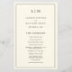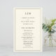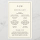 Programa de Casamento Simples com um design moderno, mas elegante, com seu monograma de duas letras no topo e seus detalhes cercados por uma fina fronteira. Todo texto está preto sobre um fundo creme/marfim e pode ser alterado na ferramenta de edição de design. A frente tem sua ordem de cerimônia e a parte de trás tem sua festa de casamento e obrigado. Um design chic e na moda que é excelente para um casal minimalista. Estes programas de casamento baratos são impressos em folhas de papel para uma opção econômica.