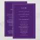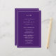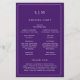 Programa de Casamento Simples com um design moderno, mas elegante, com seu monograma de duas letras no topo e seus detalhes cercados por uma fina fronteira. Todo texto está em branco sobre um fundo roxo e pode ser alterado na ferramenta de edição de design. A frente tem sua ordem de cerimônia e a parte de trás tem sua festa de casamento e obrigado. Um design chic e na moda que é excelente para um casal minimalista. Estes programas de casamento baratos são impressos em folhas de papel para uma opção econômica.