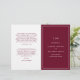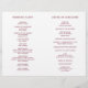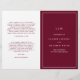 Programa de Casamento Simples dobrado com um design moderno, mas elegante, com seu monograma inicial junto com seus detalhes cercados por uma fina fronteira no cobrir frontal. A dentro tem a festa de casamento do lado esquerdo e a ordem da cerimônia do lado direito. Todos os elementos de design estão em branco e burgundy e podem ser alterados na ferramenta de edição de design. Um design chic e na moda que é excelente para um casal minimalista. Estes programas de casamento baratos são impressos em folhas de papel para uma opção de orçamento de excelente.