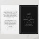 Programa de Casamento Simples dobrado com um design moderno, mas elegante, com seu monograma inicial junto com seus detalhes cercados por uma fina fronteira no cobrir frontal. A dentro tem a festa de casamento do lado esquerdo e a ordem da cerimônia do lado direito. Todos os elementos de design estão em preto-e-branco e podem ser alterados na ferramenta de edição de design. Um design chic e na moda que é excelente para um casal minimalista. Estes programas de casamento baratos são impressos em folhas de papel para uma opção de orçamento de excelente.