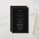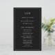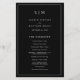 Programa de Casamento Simples com um design moderno, mas elegante, com seu monograma de duas letras no topo e seus detalhes cercados por uma fina fronteira. Todo texto está branco sobre um fundo preto e pode ser alterado na ferramenta de edição de design. A frente tem sua ordem de cerimônia e a parte de trás tem sua festa de casamento e obrigado. Um design chic e na moda que é excelente para um casal minimalista. Estes programas de casamento baratos são impressos em folhas de papel para uma opção econômica.