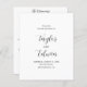 Programa de casamento branco e preto contemporâneo com um layout simples e minimalista com seus nomes em um roteiro de caligrafia elegante e seus detalhes de casamento abaixo. As costas têm a sua ordem de cerimônia, festa de casamento e obrigado. Uma design moderna que combina com qualquer estilo de casamento.