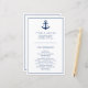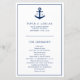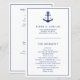 Programa náutico de casamento com uma âncora azul marinho com seu monograma em ambos os lados, sobre um fundo branco. A frente tem seus eventos de cerimônia e a parte de trás tem sua festa de casamento. Um design simples, mas elegante, perfeito para uma celebração temática na praia no verão. Estes programas de casamento baratos são impressos em folhas de papel para uma opção econômica.