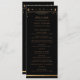 Programa de Casamento de estrelas Douradas do Sol Místico Negro O Sol Lua Negra apresenta sol dourado, lua e estrelas com um quadro de ouro sobre um fundo negro com a sua ordem de cerimônia na frente e na festa de casamento e obrigado no reverso em um roteiro dourado moderno. Personalize editando o texto nas caixas de texto fornecidas. Projetado para você pelo Evco Studio www.zazzle.com/store/evcostudio