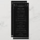 Programa de Casamento das Estrelas do Sol Negro Místico da Lua Negra apresenta o sol prateado, a lua e as estrelas com uma moldura prateada sobre fundo negro com a ordem de cerimônia na frente e na festa de casamento e obrigado no sentido inverso em um roteiro prateado moderno. Personalize editando o texto nas caixas de texto fornecidas. Projetado para você pelo Evco Studio www.zazzle.com/store/evcostudio