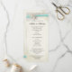 O cartão do programa de casamento da praia do local e da piscicultura é dois lados com detalhes da cerimônia nos participantes da frente e da festa de casamento no verso.
