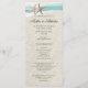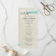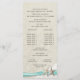 O cartão do programa de casamento da praia do local e da piscicultura é dois lados com detalhes da cerimônia nos participantes da frente e da festa de casamento no verso.