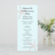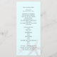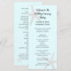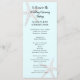 Programa de cerimônia casual de praia, alto, duplo, com estrelas-do-mar. Azul pálido com design de cinza de peixe-estrela impresso em cartões planos altos. Personalize facilmente ambos os lados com seu texto em script preto para o título e fontes impressas para o restante. Adicione espaços onde for necessário para preencher a redação.