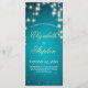 Modelos de Rack Cards do Programa de Casamento - Lâmpadas de Espelhamento Ouro Faux Elegante e Lâmpadas de String Vintage com Fundo Sparkle Azul Turquesa. Um Design Perfeito Para O Seu Grande Dia! Todo Estilo De Texto, Cores, Tamanhos Podem Ser Modificados Para Ajustado Das Suas Necessidades.