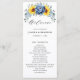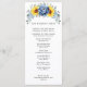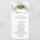 O elegante e moderno programa de casamento floral de meio verão apresenta um buquê de hidrocolorecia e hipnagas de girassol em tons de amarelo, ardósia, azul empoeirado com folhas botânicas verdes e sujas e eucalipto. Por favor, encontre mais designs e variações na minha loja de "blisswedingpaperie". E fique à vontade para me contactar para mais personalizações ou itens correspondentes.