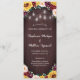 Estes programas de casamento apresentam girassóis e flores borboletas em um fundo de madeira com luzes de jarro de pedras. Personalize-os com o seu texto. Estes programas de casamento fazem parte de uma coleção que inclui uma variedade de papelaria de casamento que você pode personalizar para o seu casamento. Visite nossa loja para ver o intervalo de cheios.
