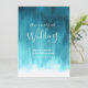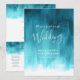 Um aqua de arte moderna abstrato de dois lados em um programa de núpcias branco. Edite este programa de casamento com seus próprios nomes, datas, textos de cerimônia, festas de casamento. Um programa simples, mas elegante, simplesmente substitua o texto de amostra por seus detalhes de casamento. Programas modernos de cerimônia de casamento. Pintura original de lavagem de abstrato e design por Sarah Trett. www.sarahtrett.com para www.mylittleedenweddings.com