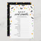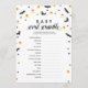 Um jogo de chá de fraldas com morcegos negros, uma bota de bruxas, fantasmas, milho doce e bolinhas. O jogo de chá de fraldas é "baby scramble" onde você desembarca as palavras temidas do bebê. O fundo tem um fundo preto com o padrão temático do Halloween. Divertido para chás de fraldas de outubro!