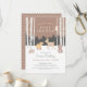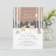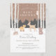 Celebrar o pequeno a caminho com estes adoráveis convites para o chá de bebê de inverno! Um veado doce, uma raposa tímida, um urso pardo, guaxinim, porco-espinho e velha coruja sábia juntam-se à floresta de inverno com um fundo castanho macio. As aspiras estão na frente e no centro, enquanto a neve cai suavemente por toda a parte. O dorso tem um padrão de bolinhas castanho e branco. Perfeito para chás de fraldas neutros em termos de gênero.