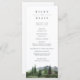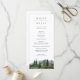 Comemore sua cerimônia em estilo com este programa de casamento de dois lados da coleção Timberline da Redwood & Vine Design Co. Apresentando montanhas de cor aquática verde tranquila e sotaques de pinheiros, este layout elegante oferece um formato limpo e moderno para os detalhes da sua timeline de cerimônia e festa de casamento. Perfeito para casamentos rústicos minimalistas, comemorações de inverno ou eventos elegantes ao ar livre cercados pela natureza. Personalize o texto para se adequar à sua celebração exclusiva.