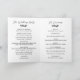 Elegante dobrou o programa de casamento em um design de tipografia preto e branco com um monograma de coroa de louros e belas fontes. Programa de casamento tipográfico com um monograma verde e lindas fontes e uma foto do casal. Programa de casamento fotográfico com um monograma elegante e lindas fontes e detalhes verdes em preto contra fundo branco.