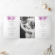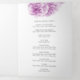Arte de aquarela simples, com três faces, de cereja, florescendo em um programa de núpcias branco. Parte do conjunto de papelaria de casamento de cor d'água florescente. Bonito púrpura e cinza. Edite este programa de casamento com seu próprio nome, datas, texto da cerimônia, assistentes de festa de casamento e obrigados. Elegante programa de cerimônia de casamento simplesmente substitua o texto da amostra por seus próprios detalhes de casamento. Pintura e design por Sarah Trett. www.sarahtrett.com para www.mylittleedenweddings.com
