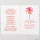 Estes programas dobrados são perfeitos para qualquer casal planejando uma celebração romântica de casamento na praia. O design apresenta uma palmeira aquarela tropical em tons de rosa-coral quente, vermelho e laranja num fundo branco limpo, com uma redação editável coordenada por cor. O design simples pode ser personalizado para se adequar ao seu evento especial e será a ordem de serviço perfeita para qualquer festa temática tropical, incluindo chás de panela, noivados, chás de casamento, festas de aniversário e muito, muito mais.