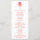 Estes modelos são perfeitos para qualquer casal planejando uma celebração romântica de casamento na praia. O design apresenta uma palmeira aquarela tropical em tons de rosa-coral quente, vermelho e laranja num fundo branco limpo, com uma redação editável coordenada por cor. O design simples pode ser personalizado para se adequar ao seu evento especial e será a ordem de serviço perfeita para qualquer festa temática tropical, incluindo chás de panela, noivados, chás de casamento, festas de aniversário e muito, muito mais.