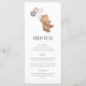 Um cardápio com um urso doce segurando 3 balões marrons, ideal para a festa de piquenique do seu ursinho! Os balões são de tons neutros, mas você também pode mudar a cor de cada um, se preferir. Você também pode alterar as letras 'ONE' ou apagá-las.