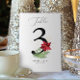 Números de mesa verde de feriado dos Partidos Temáticos design apresenta botânicos com cor d'água pintados manualmente e uma bonito poinsettia vermelha. O design simples moderno é colocado sobre um fundo branco nítido e acentuado com sulcos de ouro correspondentes. #Natal #Feriados #FestaFeriado
