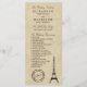 Programa Vintage Eiffel Tower Paris Wedding
