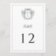 Vintage Monograma Crest, número da mesa de casamento. Vintage inspirou o estilo barroco Crest. Recursos, elegante e elegante design de tipografia negra, mistura de estilos de escrita e negrito. Observe que os cartões de número de tabela devem ser solicitados individualmente.