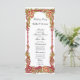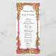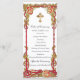 Este adorável programa de casamento vintage tem um modelo fácil que permite preencher a festa de casamento de um lado, e a ordem da cerimônia do outro. Clique no botão personalizar se precisar alterar alguma coisa. Apresentando uma cruz de ouro e uma estrutura floral de estilo medieval em vermelho e ouro.