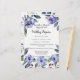 programa de casamento. Linda coloração d'água pintou a imagem de uma flor de anêmona roxa, tons de violeta azul e roxo, uma bela cena de vida perfeita para um elegante casamento moderno no jardim de flores no verão.