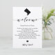 Este cartão moderno e elegante é o símbolo perfeito para as suas bolsas de boas-vindas do hotel. Digite os eventos principais e uma nota personalizada para ajudar seus convidados a navegar no fim de semana.