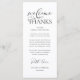 Make a heartfelt first impression at your wedding reception with this sophisticated "Welcome & Thanks" place card—designed to rest beautifully on each guest’s plate, in black and white theme. Featuring graceful script typography and a timeless layout, this elegant card warmly greets your loved ones while expressing gratitude for sharing your special day. Ideal as a dual-purpose place card & welcome note—combine sentiment and function without cluttering your tables-cape. Designed for couples who value refined details, this card complements modern and luxe wedding themes. Print on premium card stock for a luxurious finish that guests will cherish (or even keep as a sweet keepsake!). Because love is best served with gratitude.