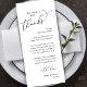 Programa Welcome and Thanks, Wedding Dinner Thank You Card