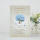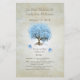 Pó claro Árvore de Folha de Coração Azul, Árvore Mágica de Amor Árvore Real de Folha de Coração Azul no Papel Metálico Tonelado de Prata legal de Tea e alguns designs giros e giros para melhorar as raízes do amor neste único convite para casamento em floresta..