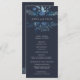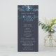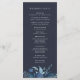 Nosso programa de casamento de chic de inverno apresenta detalhes da sua cerimônia em letras elegantes, com seus nomes flanqueados por uma coloração d'água pintada em tons gelados de azul. O verso lista os membros da sua festa de casamento com campos de texto facilmente editáveis. Coordena-se com a nossa coleção de convites para casamento do Winter Azure. Use os campos modelo para adicionar informações sobre sua cerimônia e noivado e clique em "Personalizar" para reposicionar elementos, se necessário.