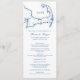 Melhore seu casamento costeiro com nosso programa de casamento de dois lados, com um tema sofisticado do mapa azul do Cabo Cod marinho. Perfeito para o seu dia especial no Clube de praia de Wychmere em Harwich Port, MÃES, este programa detalha lindamente a sua cerimônia e recepção. Personalize-o com seus nomes, data de casamento e itinerário de evento para um toque elegante e sem descontinuidades para sua comemoração à beira-mar. Trabalho de arte por Designs de Mapa Costeiro.